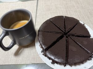 最近奥さんがケーキ作りにハマってて僕の好きなチョコレートタルトを作ってくれました!
